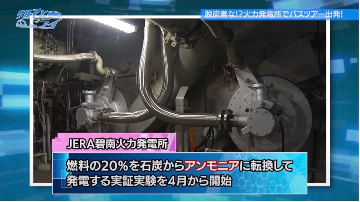 通常、火力発電所は石炭を燃やして電気を作るため、発電の際に二酸化炭素が発生する。「JERA碧南火力発電所」では、今年4月から燃料の20%を石炭ではなくアンモニアに変えて発電する実証実験が始まり、2027年度の本格稼働を目指して取り組んでいる。