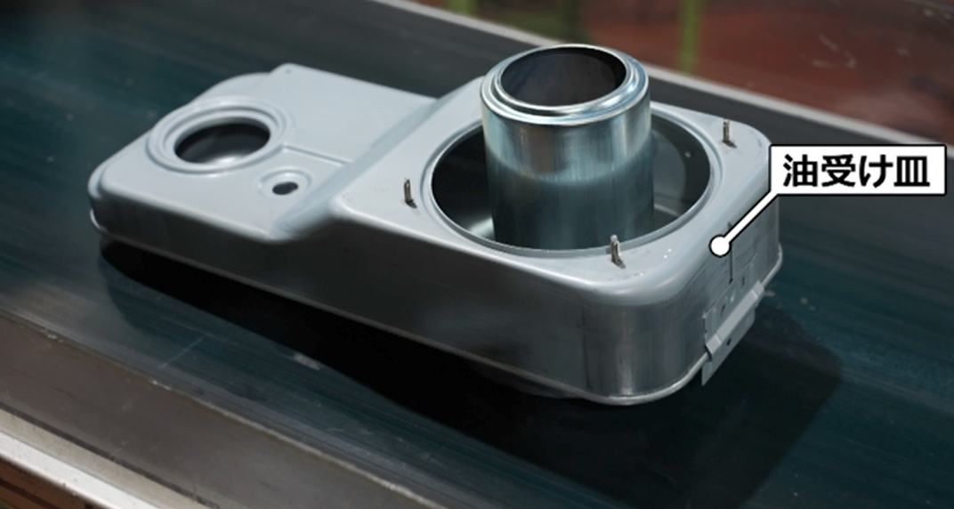 続いて、石油ストーブの一番下にある「油受け皿」を作る工程。油タンクと燃焼部をつなぐ重要なパーツだ。