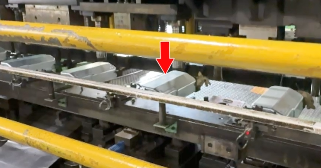 再び超強力な500トンプレス機が活躍し、平らだった鉄板が、一瞬で受け皿の形に。