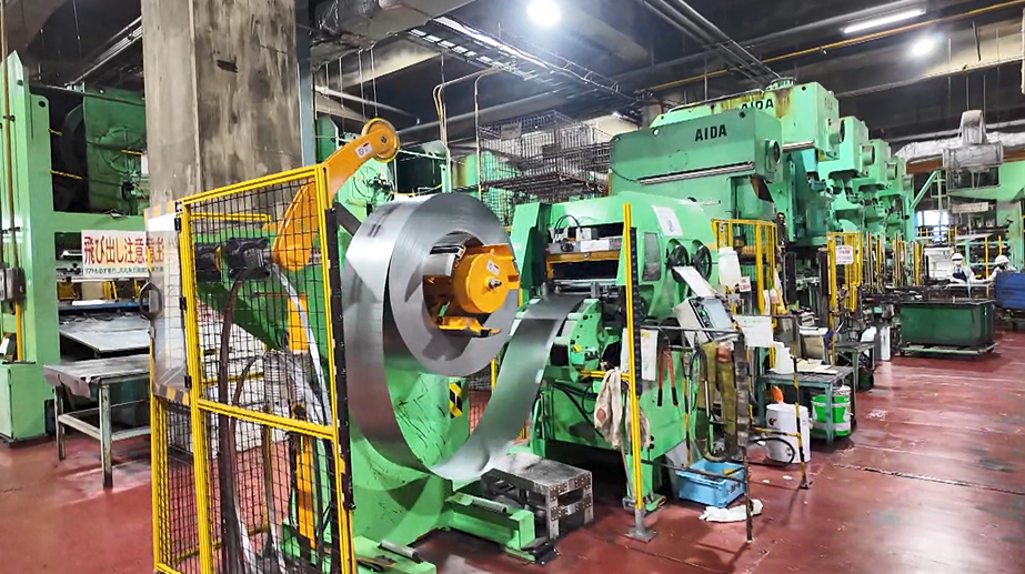第2工場の1階には、油タンクの素材となるロール状の鉄板が。