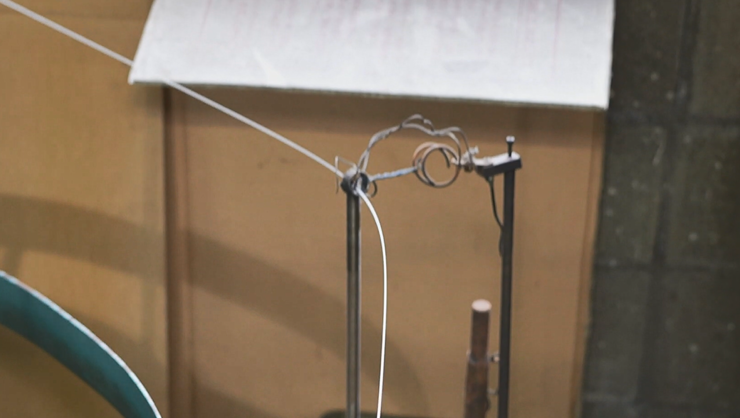 針金を送り出すことで、美しいらせんが作られる。まるでばねが生きているような動きだ。