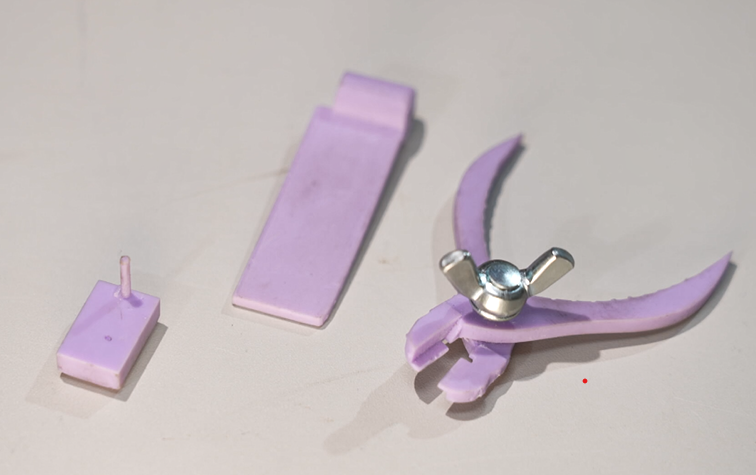 3Dプリンターで作った特製工具の棒に這わせて針金を曲げ、余分な部分を切り落とすと、きれいなフックが。