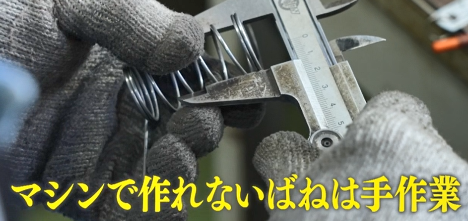 製作を始めた当初、弘則さんはこの作業に悪戦苦闘していた。通常業務を終えた後、たった一人でばね作りに挑み「100個以上は作った」と話す弘則さん。