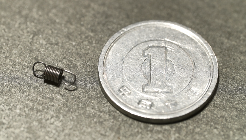 しかし、求められていたのは全長わずか1センチ、針金の細さは0.2ミリと、前例のない小さなサイズの引きばねだった。さらに、通常の引きばねとはフックの形状も異なる。