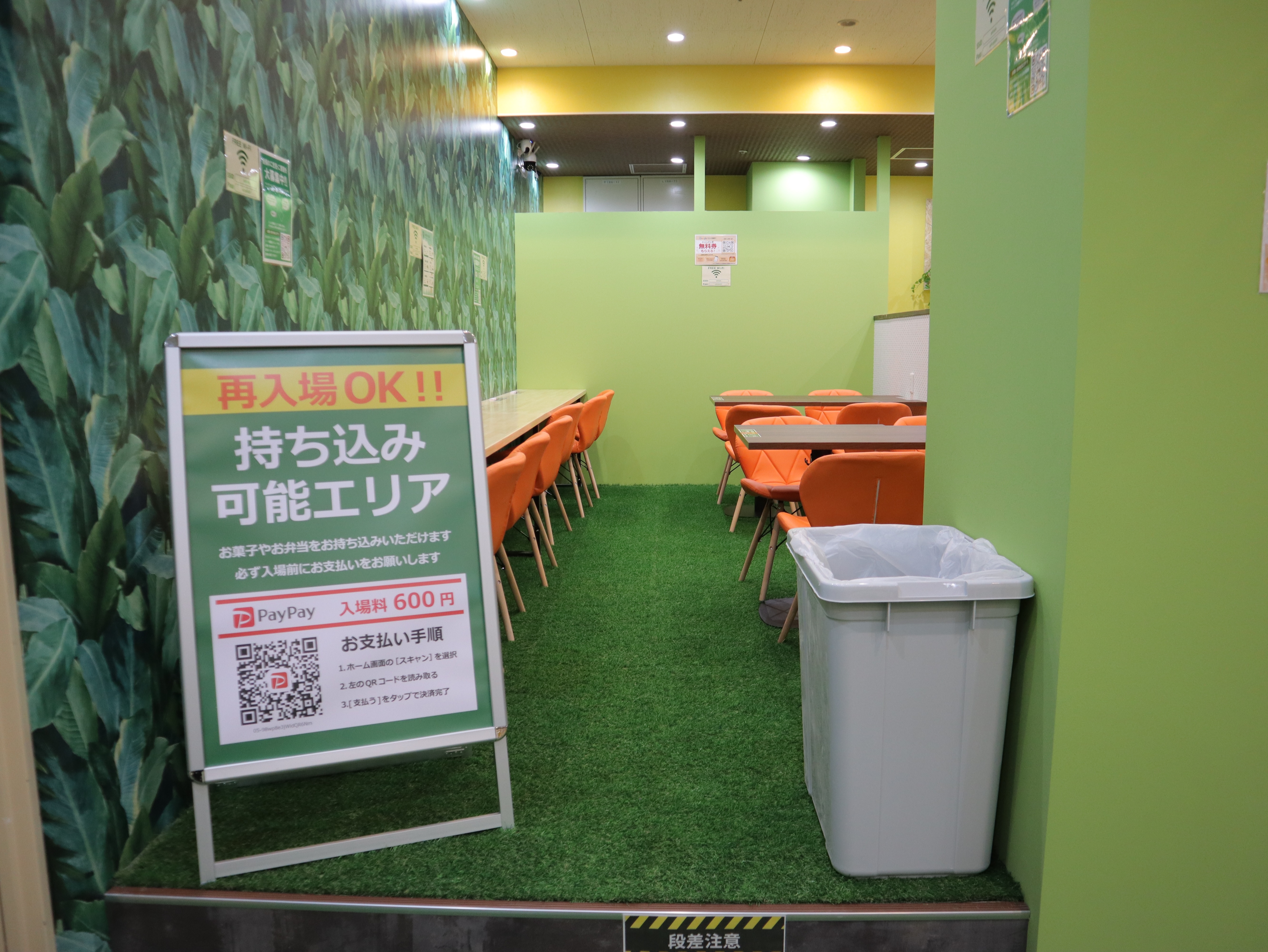 再入場OKの持ち込み可能エリア。緑を基調にした落ち着く空間に。