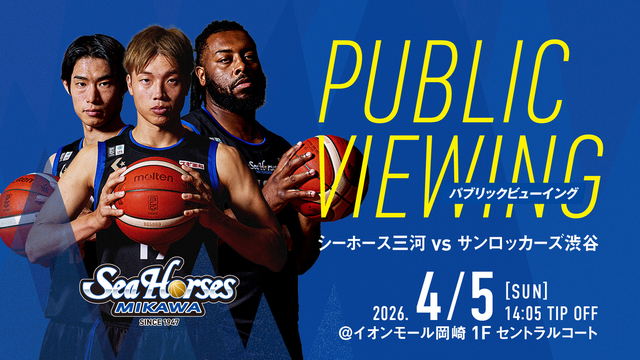 Bリーグの熱い戦いが続く中、愛知県刈谷市を拠点とする「シーホース三河」が、2026年4月5日(日)にアウェーで行われる「サンロッカーズ渋谷戦」のパブリックビューイングを開催することを発表しました。